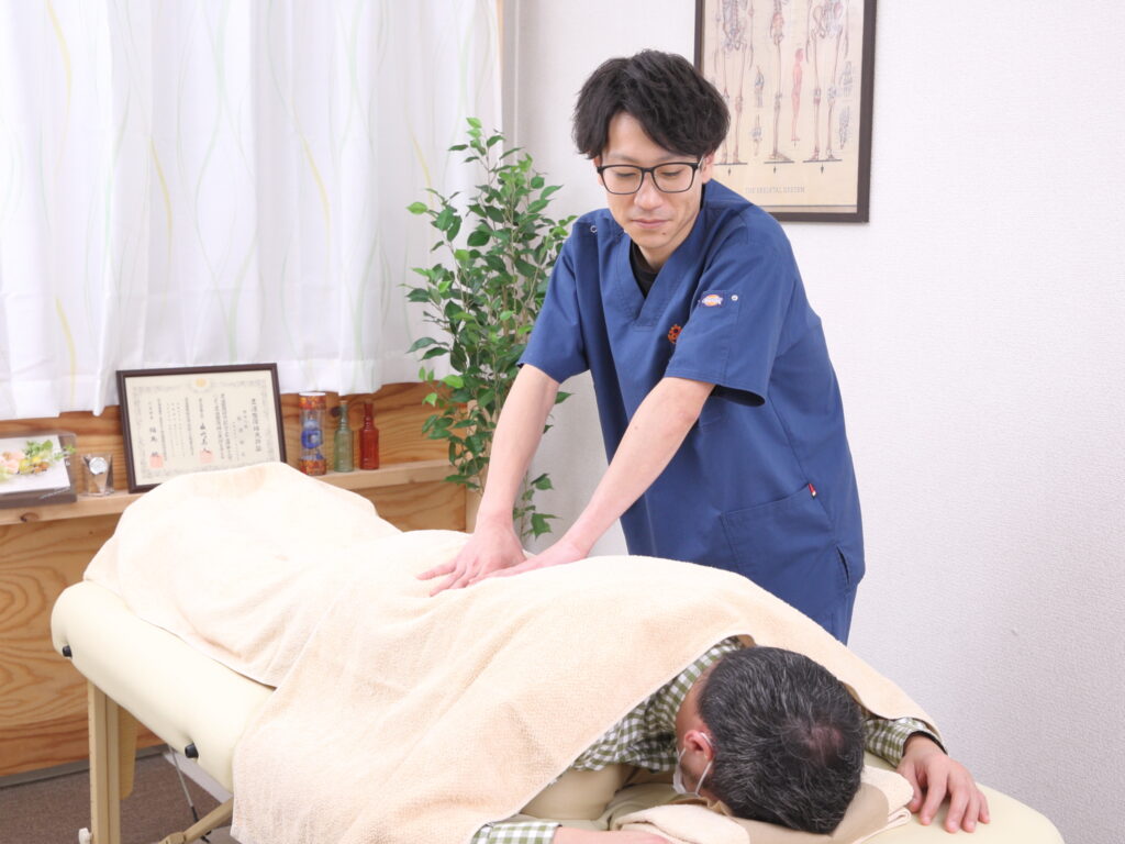 お悩みや不安をしっかりお伺いし、納得いただいた上で施術を行います。腰痛・膝痛・肩こり・頭痛など、幅広いお悩みに対応しています。